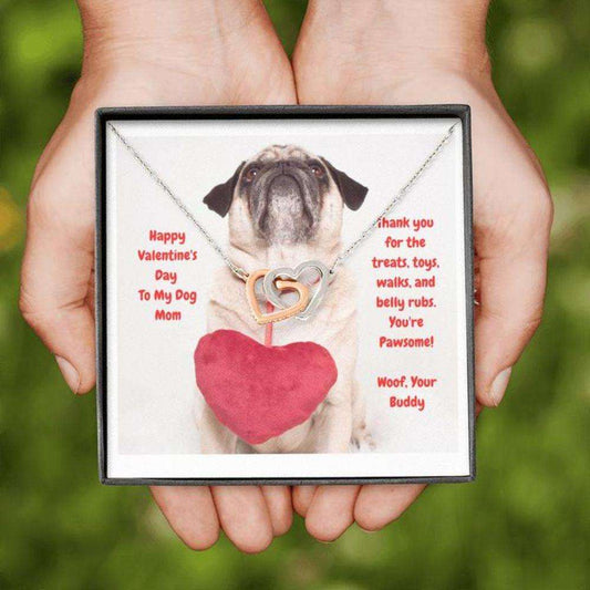 Dog Mom Necklace, Gift Necklace Message Card “ To My Buff Pug Dog Mom Happy Valentine’S Day