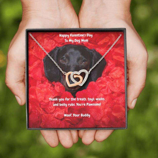 Dog Mom Necklace, Gift Necklace Message Card “ To My Black Dachshund Dog Mom Happy Valentine’S Day