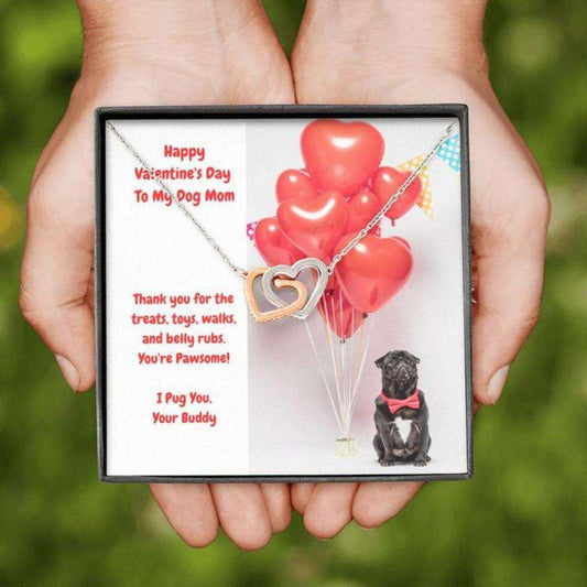 Dog Mom Necklace, Gift Necklace Message Card “ To My Black Pug Dog Mom Happy Valentine’S Day