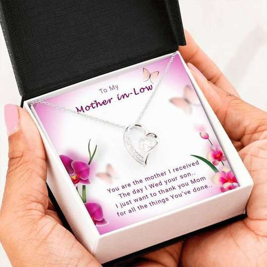 Mother-In-Law Necklace, Thank For All The Love Forever Love Necklace Gift For Mom In Law