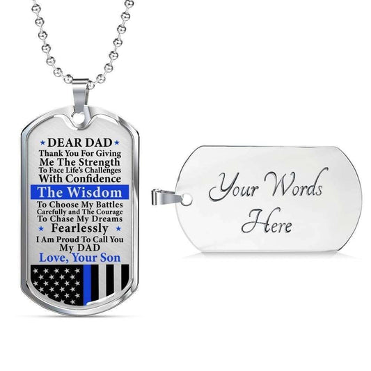 Dad Dog Tag Father’S Day Gift, Police Officer’S Dad “ Thank You For All You Do “ Love Son Dog Tag Military Chain Necklace Custom Engraved