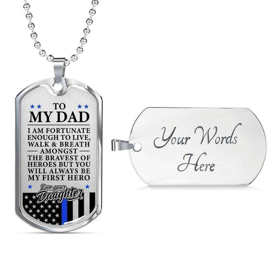 Dad Dog Tag Father’S Day Gift, Police Officer’S Dad First Hero Love Daughter Dog Tag Military Chain Necklace Custom Engraved