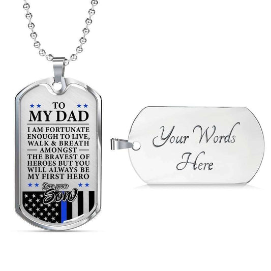 Dad Dog Tag Father’S Day Gift, Police Officer’S Dad First Hero Love Son Dog Tag Military Chain Necklace Custom Engraved