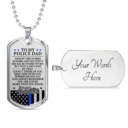 Dad Dog Tag Father’S Day Gift, Policeman’S Dad Unconditional Love Dog Tag Military Chain Necklace