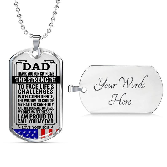 Dad Dog Tag Father’S Day Gift, Present For Dad Silver Dog Tag Military Chain Necklace Thank For Giving Me Strength