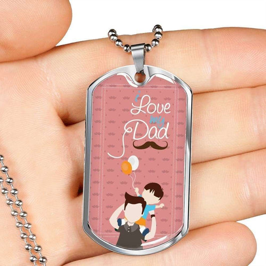 Dad Dog Tag Father’S Day Gift, Pink Love My Dad Beard Dog Tag Military Chain Necklace Gift For Dad