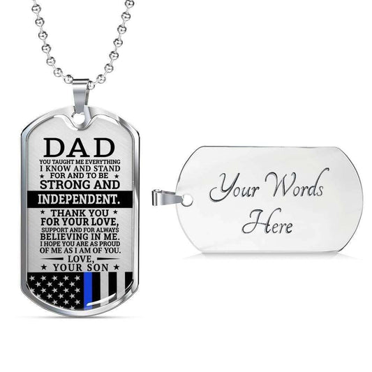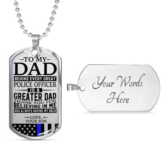 Dad Dog Tag Father’S Day Gift, Police Officer’S Dad Unwavering Support Dog Tag Military Chain Necklace