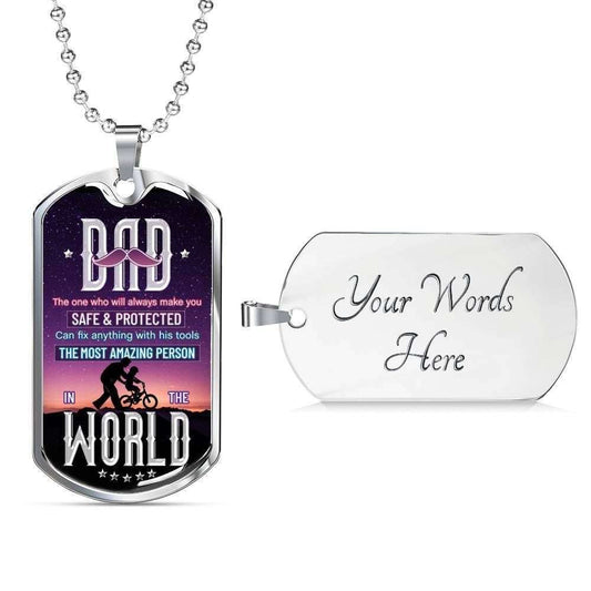 Dad Dog Tag Father’S Day Gift, Son Dog Tag, The Most Amazing Person In The World Dog Tag Military Chain Necklace For Dad