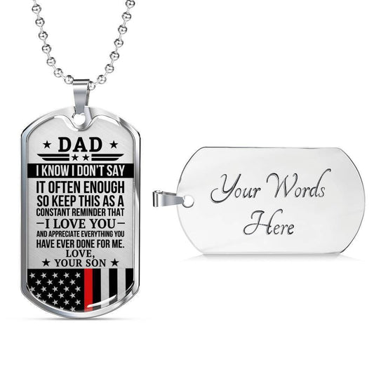 Dad Dog Tag Father’S Day Gift, Red Line Son Gift For Dad Silver Dog Tag Military Chain Necklace Your Unconditional Love