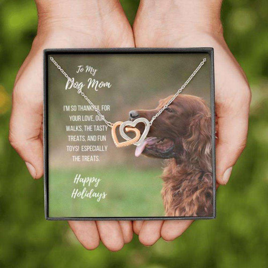 Dog Mom Necklace, Happy Holidays Gift “ Irish Setter Dog Mom Necklace
