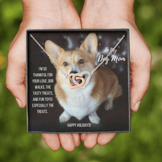 Dog Mom Necklace, Happy Holidays Gift “ Pembroke Welsh Corgi Dog Mom Necklace