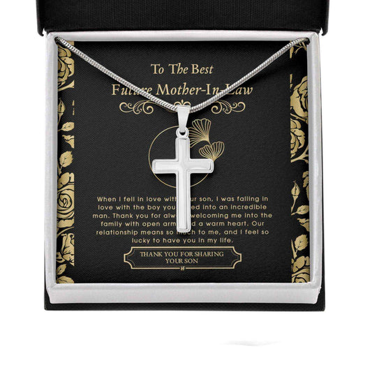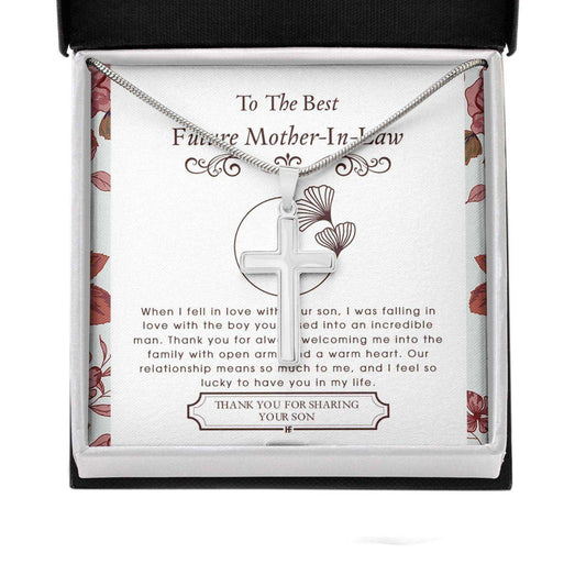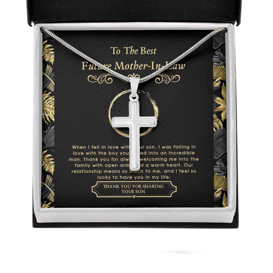 Future Mother In Law Necklace, Gift For Mother’S Day From Daughter V2, Message Card Cross Necklace
