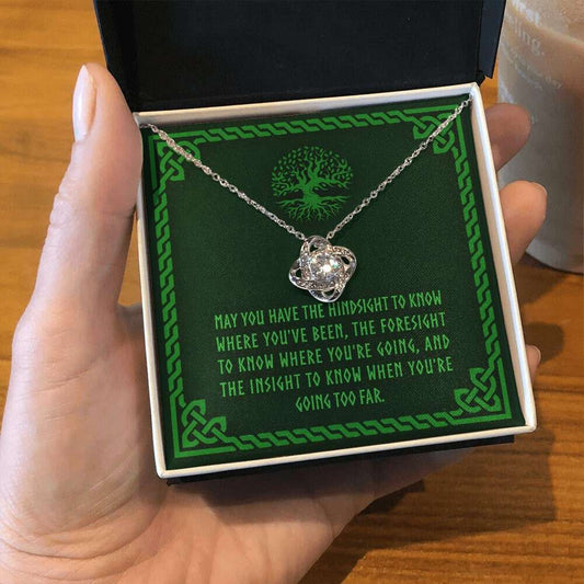 Friend Necklace, Irish Blessing Knot Necklace Celtic Gaelic Jewelry Gift May You Have Hindsight Foresight Insight