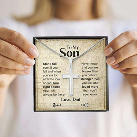 Son Necklace From Dad Stand Tall Brave Strong Love Necklace Gift For Men Boys