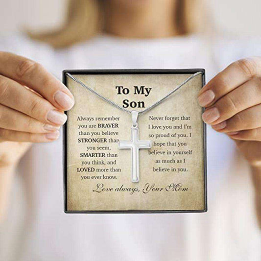 Son Necklace From Mom Brave Strong Smart Love Always Necklace Gift For Men Boys