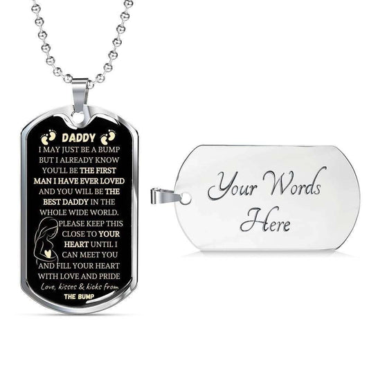 Dad Dog Tag Custom Picture Father’S Day Gift, I’M Just The Dad That Stepped Up Dog Tag Military Chain Necklace For Dad