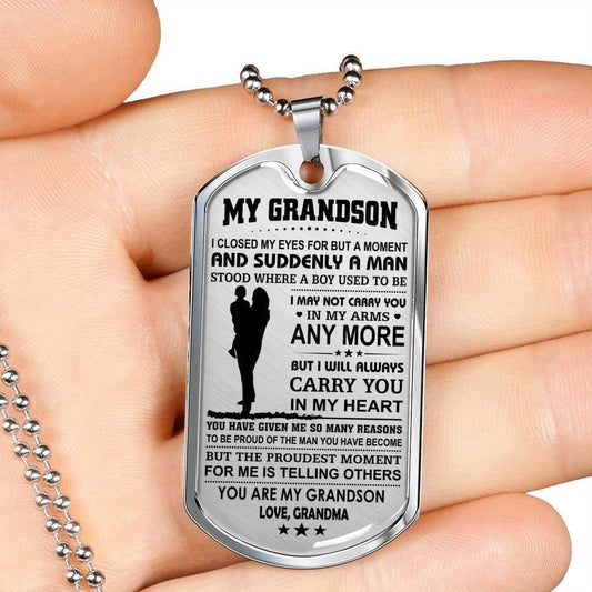 Grandmother Dog Tag, Custom Grandma Giving Grandson You Are My Grandson Dog Tag Military Chain Necklace Dog Tag