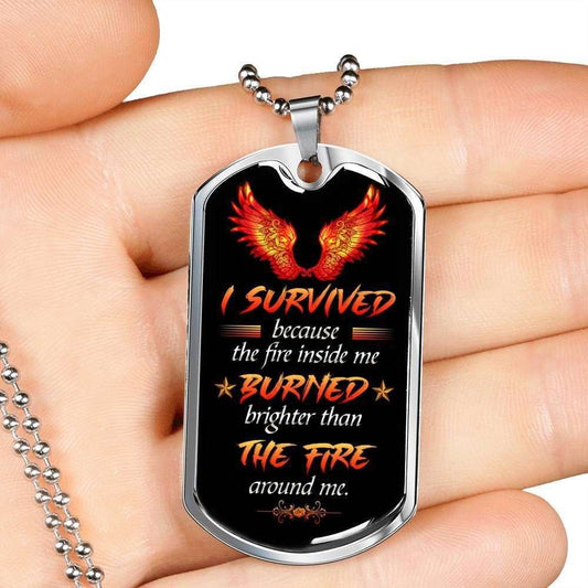 Custom I Survived Silver Dog Tag Military Chain Necklace Gift For Cool Boys Dog Tag