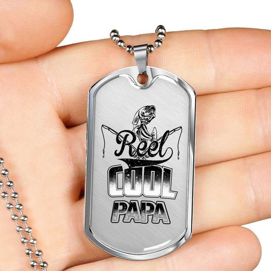 Dad Dog Tag Father’S Day Gift, Reel Cool Papa Dog Tag Military Chain Necklace For Dad Dog Tag