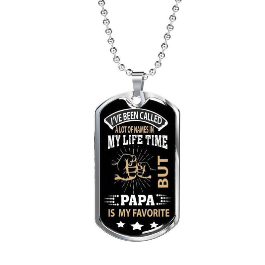 Dad Dog Tag Father’S Day Gift, Papa Is My Favorite Dog Tag Military Chain Necklace For Dad Dog Tag