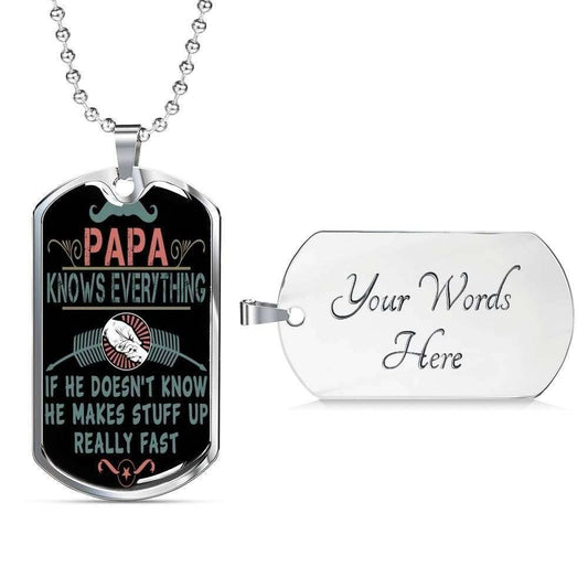 Dad Dog Tag Father’S Day Gift, Papa Knows Everything Dog Tag Military Chain Necklace For Dad Dog Tag