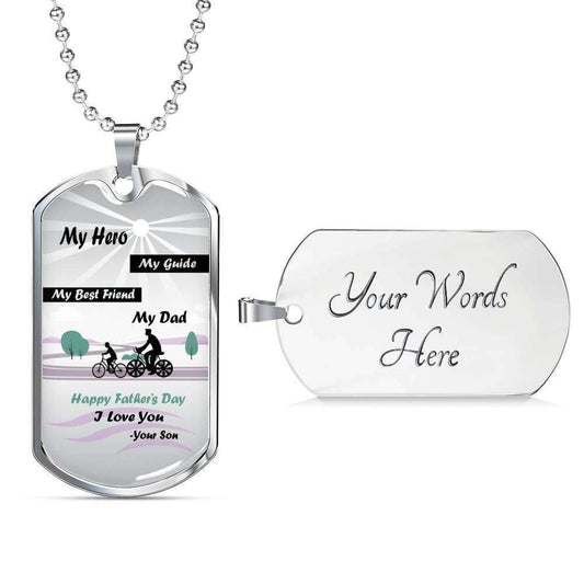 Dad Dog Tag Custom Picture Father’S Day Gift, My Hero My Guide Dog Tag Military Chain Necklace Gift For Daddy Dog Tag