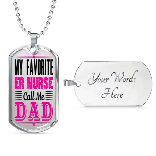 Dad Dog Tag Custom Picture Father’S Day Gift, My Favorite Er Nurse Call Me Dad Dog Tag Military Chain Necklace For Er Nurse Dad