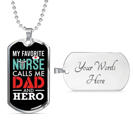 Dad Dog Tag Custom Picture Father’S Day Gift, My Favorite Nurse Calls Me Dad And Hero Dog Tag Military Chain Necklace Gift For Dad