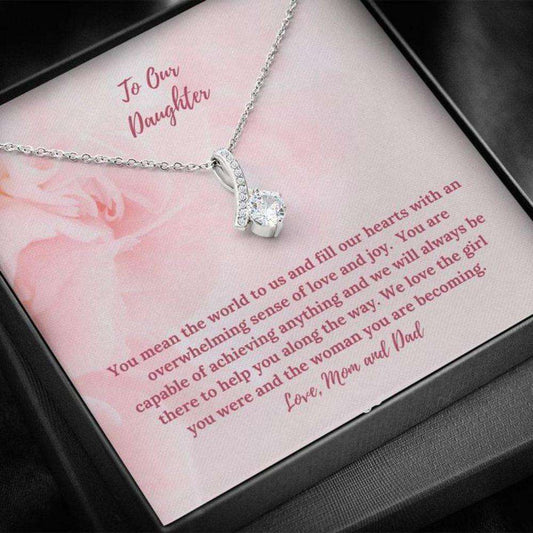 Daughter Necklace, To Daughter Gift From Mom And Dad Light Pink Beauty Necklace