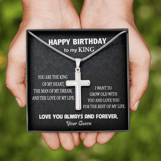 Husband Necklace, Happy Birthday To My King Cross Necklace, Birthday Necklace Gift For Husband From Wife, Husband Gifts