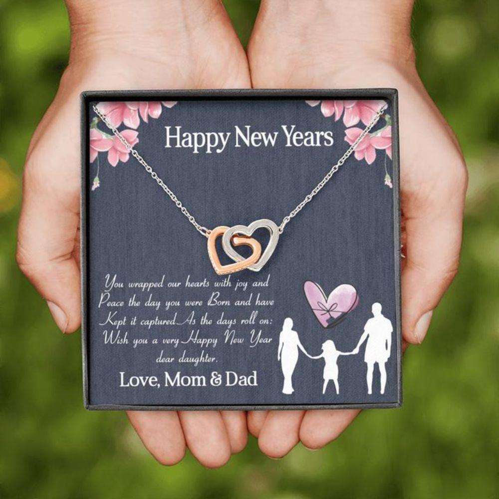 Daughter Necklace, To Daughter Gift From Mom And Dad “ Happy New Year Necklace