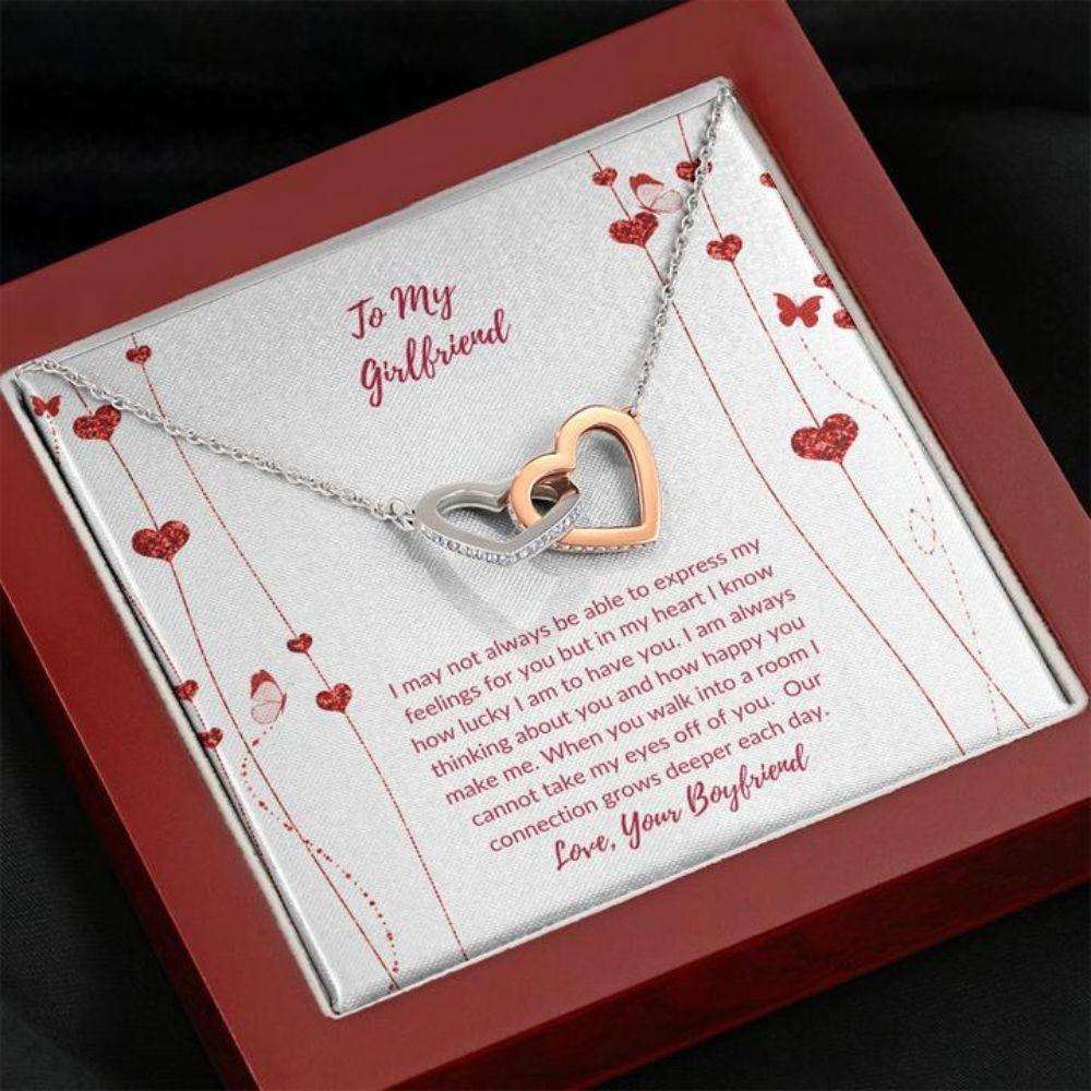 Girlfriend Necklace, Gift Necklace With Message Card Valentine’S To Girlfriend Heart Flowers