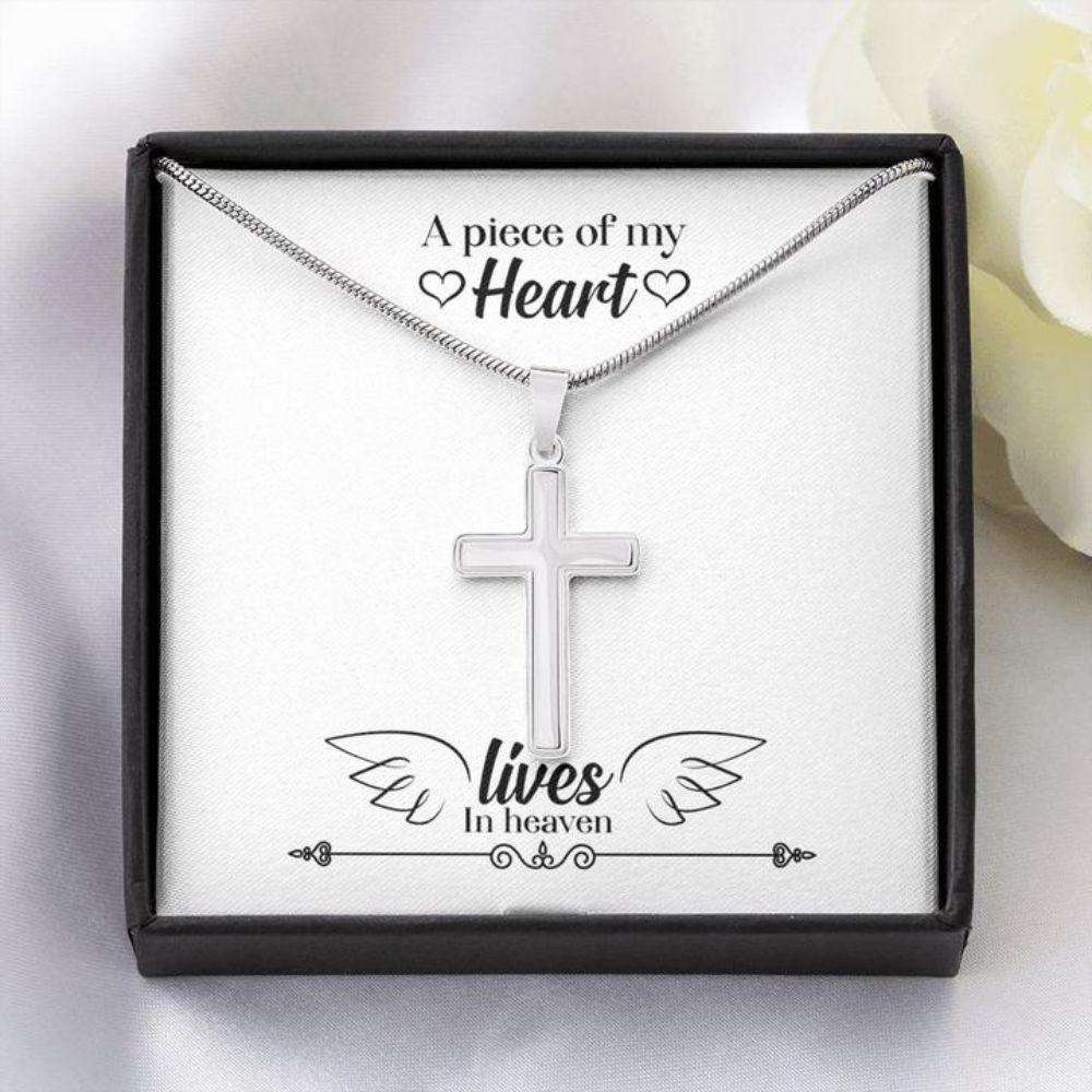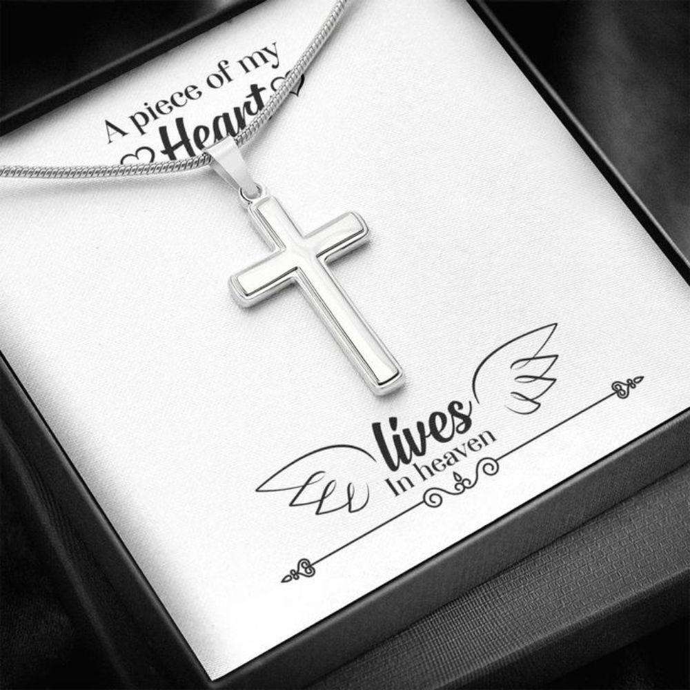 Girlfriend Necklace, Piece Of My Heart Lives In Heaver “ Forever Faithful Cross Necklace “ Gift Necklace Message Card