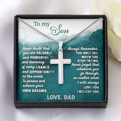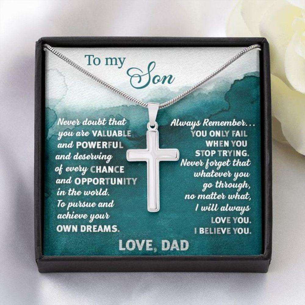 Son Necklace, Cross Necklace Gift To Son From Dad “ Green “ Faithful Cross Necklace “ Gift Necklace Message Card