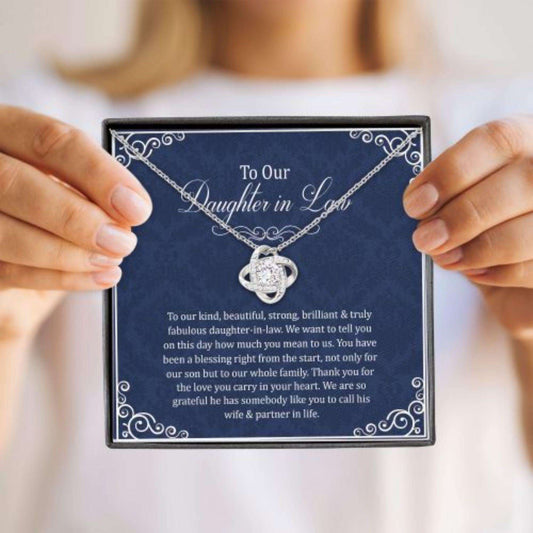 Daughter-In-Law Necklace, To Our Daughter-In-Law Gift On Wedding Day Love Knot Necklace