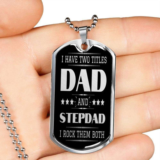 Dad Dog Tag Father’S Day Gift, Custom Dad And Stepdad Silver Dog Tag Military Chain Necklace Present For Men Dog Tag