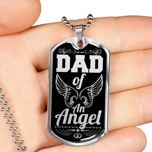 Dad Dog Tag Father’S Day Gift, Custom Dad Of An Angel Dog Tag Military Chain Necklace Gift For Dad Dog Tag