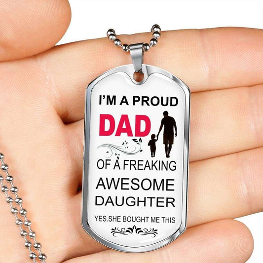 Dad Dog Tag Father’S Day Gift, Custom Daughter Giving Dad I’M A Proud Dad Dog Tag Military Chain Necklace Dog Tag