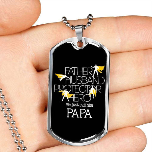 Dad Dog Tag Father’S Day Gift, Custom Father Husband Protector Hero Dog Tag Military Chain Necklace For Dad Dog Tag