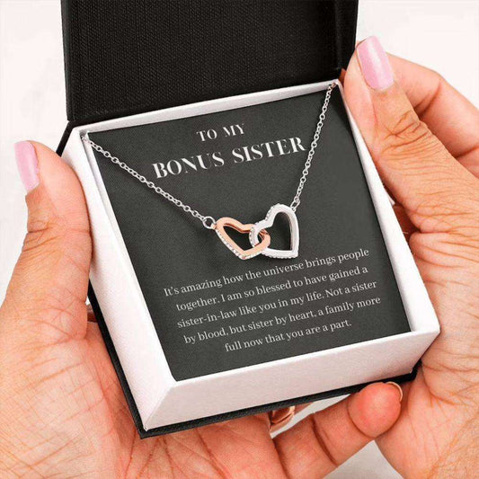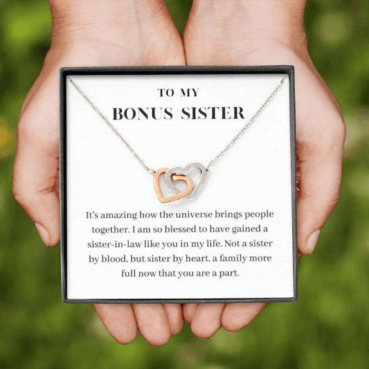 Sister Necklace, Bonus Sister Gifts, Unbiological Sister Gifts, Step Sister Birthday Necklace Gifts, Gift For Sister In Law, Joined Hearts Necklace