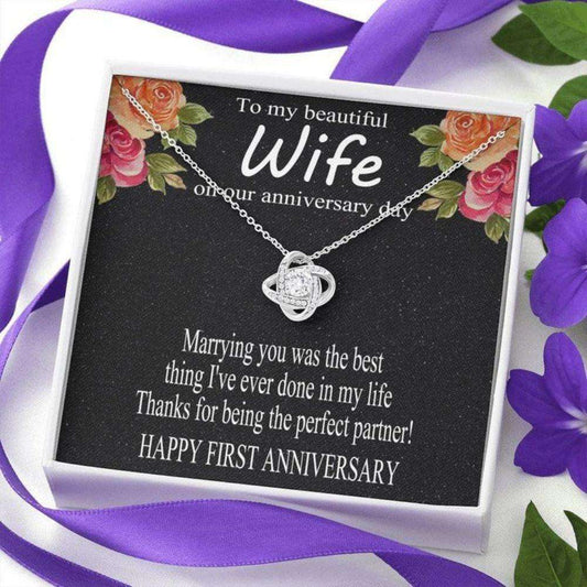 Girlfriend Necklace, 1 Year Anniversary Necklace Gift For Wife, Girlfriend, First Anniversary For Her, Love Knot Necklace Gift For Her