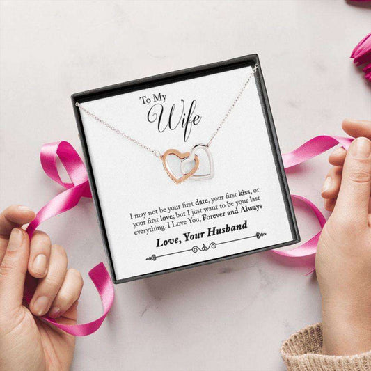Wife Necklace, I May Not Be Your First Date, Wife Birthdays Gift, Interlocking Heart Necklace, Gift For Wife From Husband To My Wife Gift