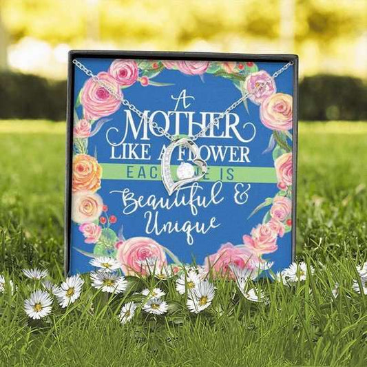 Mom Necklace, Mother Like A Flower Forever Love Necklace Gift For Mom