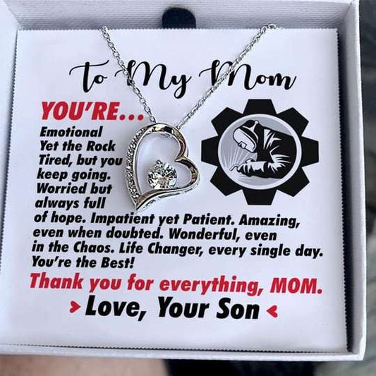 Mom Necklace, Welder Son Gift For Mom Forever Love Necklace Thank You For Everything