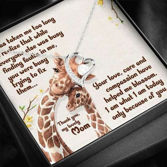 Mom Necklace, Wild Giraffe Gift For Mom Forever Love Necklace Because Of You