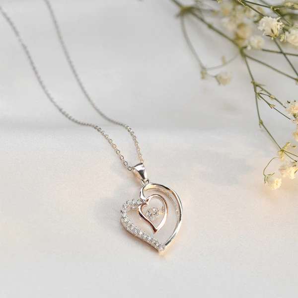 Luxurious Love – Luxe Heart Necklace Set | 925 Sterling Silver Pendant by Rakva