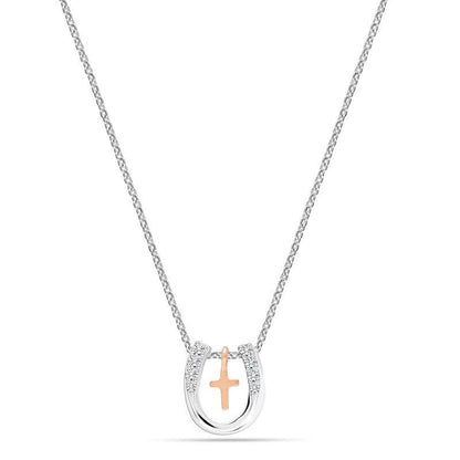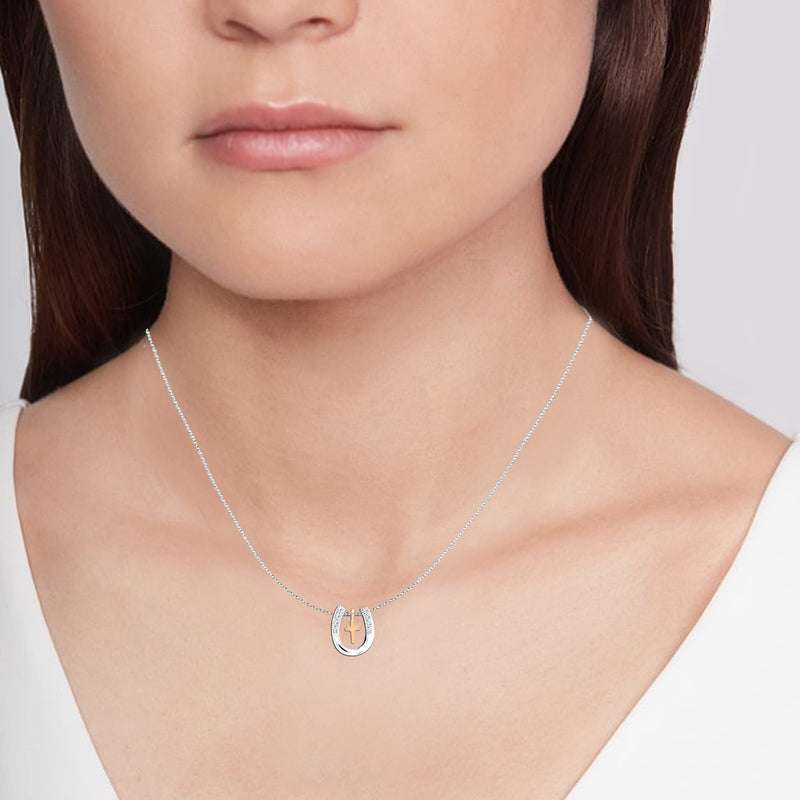 Lucky Embrace: 925 Sterling Silver Cross and Horseshoe Pendant Necklace - Perfect Jewelry Gift for Women and Teens