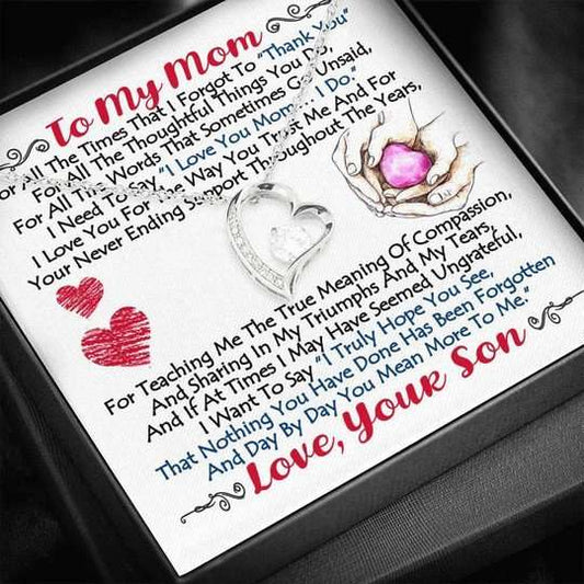 Mom Necklace, Pink Heart Son Gift For Mom Forever Love Necklace Thank You So Much