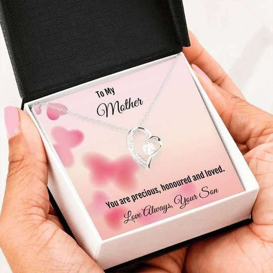 Mom Necklace, Precious Honoured And Loved Forever Love Necklace For Mom