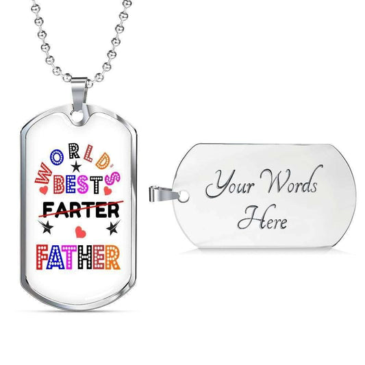 Dad Dog Tag Custom Picture Father’S Day Gift, World’S Best Farter I Mean Father Dog Tag Military Chain Necklace